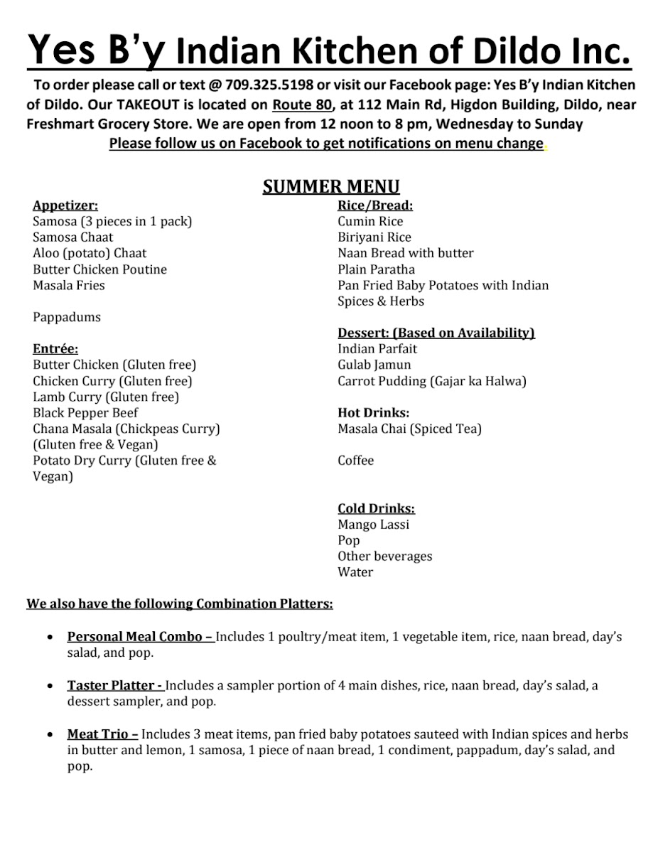 Welcome to Yes B'y Indian Kitchen of Dildo, a delightful culinary gem located at Freshmart, 112 Main Road, Dildo, NL. This vibrant eatery specializes in offering an impressive array of Indian dishes that cater to all tastes, with both vegetarian and non-vegetarian options available.